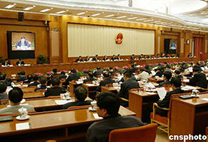 中新網(wǎng)4月25日電 十屆全國(guó)人大常委會(huì)第九次會(huì)議25日在北京舉行,吳邦國(guó)委員長(zhǎng)出席并主持了上午的第一次全體會(huì)議。