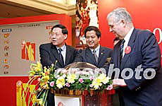 4月28日,2004-05CBA聯(lián)賽商務(wù)推介會在北京舉行,這個賽季的比賽將在賽制和招商模式上進(jìn)行重大改革:南北分區(qū)的新賽制、公開透明的招商模式、為球迷、贊助商和媒體服務(wù)。圖為籃管中心主任李元偉(左一)與嘉賓共同開啟新賽季南北雙方參賽隊伍。中新社記者:盛佳鵬