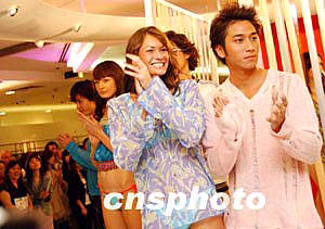 4月29日,艷麗的模特在香港“連卡佛”商場(chǎng)舉辦“2004年春夏男女時(shí)尚服裝展”上,演繹時(shí)尚泳裝系列。  香港新晉紅星吳卓羲4月29日在香港“連卡佛”商場(chǎng),客串模特演繹春夏具潮流風(fēng)格新裝。