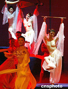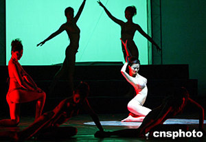 歷經(jīng)風(fēng)風(fēng)雨雨的首屆中國“人體藝術(shù)模特大賽”五月三日晚在重慶市郊一家小劇院“悄悄地”舉行,十五名經(jīng)過預(yù)賽和培訓(xùn)的男女模特參加歷時倆個小時的比賽,女模特用不全裸的“中國方式”表演中國舞蹈“飛天”,盡情展示人體之美。中新社記者:任晨鳴