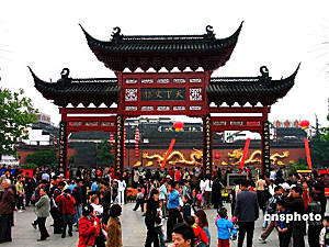 5月2日,南京市夫子廟廣場人如潮涌。正在這里舉行的2004“名城會”中國南京夫子廟文化廟會吸引了來自四面八方的賓客。王新 攝