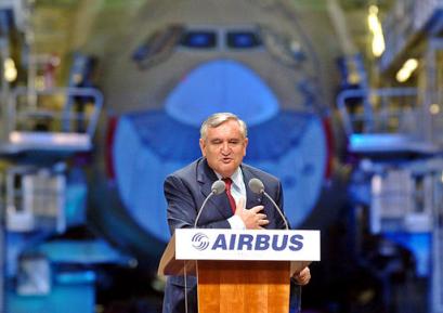 5月7日,在法國(guó)西南部城市圖盧茲空中客車公司總部,世界上最大的客機(jī)空客A380開(kāi)始總裝。該公司稱,空客A380將于2005年首飛,2006年投入運(yùn)營(yíng)。