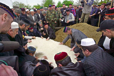 據報道,葬禮在卡德羅夫的故鄉(xiāng)車臣庫爾恰洛耶夫區(qū)岑托拉亞村舉行,北高加索一些地區(qū)的領導人和數(shù)千名車臣居民當天自發(fā)前往參加葬禮。一大清早,格羅茲尼和車臣其它地區(qū)的居民乘坐數(shù)百輛小汽車和公共汽車前往卡德羅夫的故鄉(xiāng),同卡德羅夫作最后告別。在同一天遭遇爆炸身亡的其他人士的葬禮也將在各自的家鄉(xiāng)舉行。其中包括車臣國務委員會腦庫塞·伊薩耶夫。
