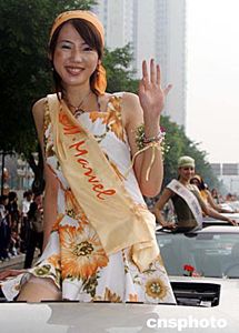 參加第十六屆世界模特小姐總決賽的世界各國參賽佳麗,五月十三日來到廣州進行慈善巡游活動。作者:史一博