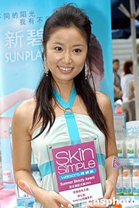 臺灣影星林心如5月13日在香港出席《屈臣氏護(hù)膚易夏日美肌大獎2004頒獎禮》,林心如獲頒「完美膚色大獎」。作者:鄧慶樂