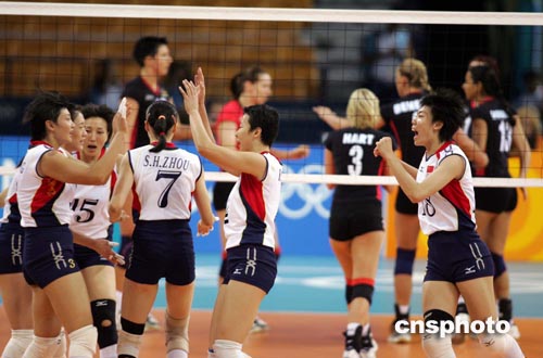 中新社雅典八月二十日電 中國女排在奧運(yùn)會(huì)女排預(yù)賽第四輪中憑借穩(wěn)定的發(fā)揮以三比0輕松戰(zhàn)勝德國隊(duì)。