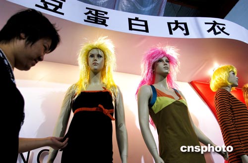 初秋的北京,國內(nèi)外七十多家內(nèi)衣生產(chǎn)廠商齊聚國際展覽中心,參加“中國國際內(nèi)衣博覽會”,他們或從外觀展示時尚美麗,或從內(nèi)質(zhì)強調(diào)親膚舒適。北京一家內(nèi)衣商展示大豆蛋白纖維內(nèi)衣,據(jù)知,中國擁有大豆蛋白纖維新技術(shù)的自主知識產(chǎn)權(quán)。中新社記者:王麗南