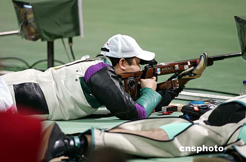 當(dāng)?shù)貢r間八月二十日,中國選手賈占波在雅典奧運男子步槍五十米臥射比賽中獲得第八,這是中國在該項目上取得的奧運會最好成績。中新社記者:毛建軍