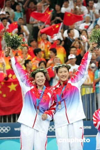 “黃穗抽筋了,我也該到修理廠大修了!备崚笑著和混雙搭檔張軍說道,張軍讓她多喝點水休息一下,“我喝了,可是不管用,還是累!”高崚/黃穗今日下午在雅典奧運會羽球女雙決賽中一比二不敵隊友楊維/張潔雯獲得銀牌,體力嚴重透支是高崚/黃穗失利的主要原因之一。