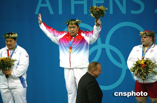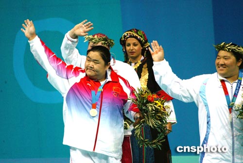 中新社雅典八月二十一日電(記者 宋方燦)雅典奧運(yùn)會(huì)舉重賽場(chǎng)今天下午又出一枚金牌,中國(guó)選手唐功紅在女子七十五以上公斤級(jí)的比賽中以過(guò)人的氣勢(shì),以三百零五公斤的總成績(jī)奪取金牌,同時(shí)打破挺舉和總成績(jī)的世界紀(jì)錄。