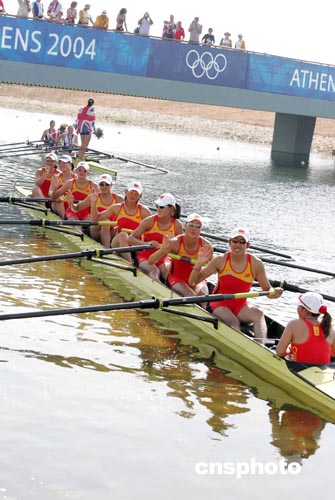 當?shù)貢r間八月二十二日,參加雅典奧運女子八人單槳有舵手賽艇比賽的中國隊獲得第四名。中新社記者:毛建軍