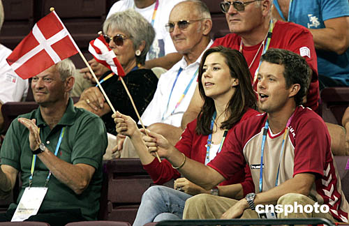 圖為丹麥王子弗雷德里克(Frederik)和他的妻子瑪莉·唐納森(Mary)親臨現(xiàn)場為選手們助威。