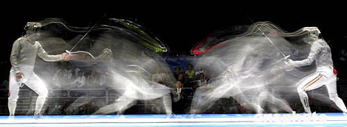 圖為在女子配劍個人賽中,選手的精彩表現(xiàn)。
