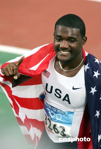 當?shù)貢r間八月二十二日晚,雅典奧運田徑百米飛人大戰(zhàn)以美國新生代的勝出而告終,二十二歲的美國小將加特林以9秒85的成績勇奪金牌。中新社記者:毛建軍
