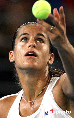 圖為在當(dāng)?shù)貢r間8月21日舉行的奧運(yùn)會女單決賽中,法國網(wǎng)壇名將毛瑞斯莫不敵比利時選手海寧屈居亞軍。
