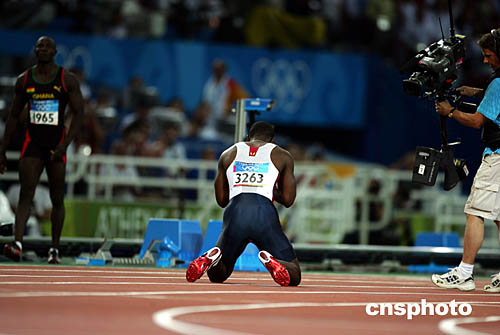 美國(guó)選手加特林(Justin Gatlin)在當(dāng)?shù)貢r(shí)間8月22日舉行的男子100米“飛人”大戰(zhàn)中力壓群雄奪取桂冠。圖為他在奪冠后興奮的慶祝自己的勝利。