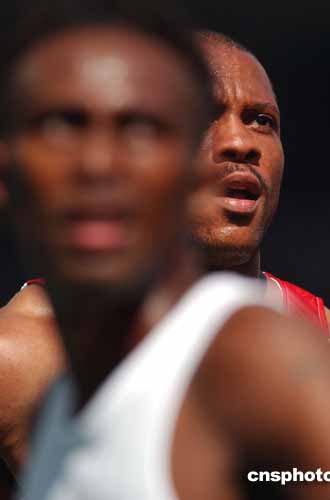 圖為美國(guó)著名短跑運(yùn)動(dòng)員格林在21日的男子100米預(yù)賽中。