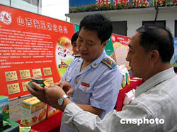 開展保護(hù)注冊商標(biāo)專用權(quán)整治行動(dòng),是中國國務(wù)院今年工作要點(diǎn)的一項(xiàng)重要內(nèi)容,也是全國工商系統(tǒng)今年整頓規(guī)范市場和經(jīng)濟(jì)秩序的重點(diǎn)之一。山西工商系統(tǒng)集中開展了查處涉外商標(biāo)案件及食品、藥品商標(biāo)案件。圖為在八月二十三日召開的“打商標(biāo)侵權(quán),保知識(shí)產(chǎn)權(quán)”現(xiàn)場會(huì)議上,榆次工商系統(tǒng)執(zhí)法人員介紹受到工商部門保護(hù)的地方著名商標(biāo)及名優(yōu)產(chǎn)品。作者:張?jiān)?