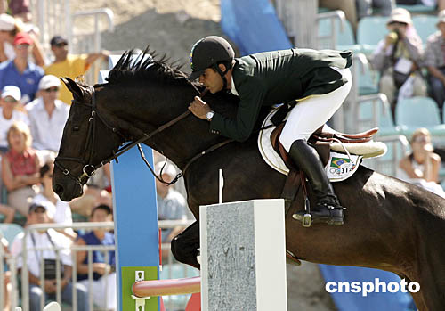 圖為巴西選手Alvaro Miranda Neto在當(dāng)?shù)貢r(shí)間8月24日舉行的男子馬術(shù)團(tuán)體場(chǎng)地障礙賽中的精彩表現(xiàn)。