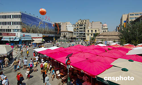 圖為來(lái)自四面八方的人們聚集到蒙納斯提拉奇廣場(chǎng)(Monastiraki)跳蚤市場(chǎng)來(lái)買賣商品。奧運(yùn)會(huì)給希臘帶來(lái)了無(wú)限商機(jī)。
