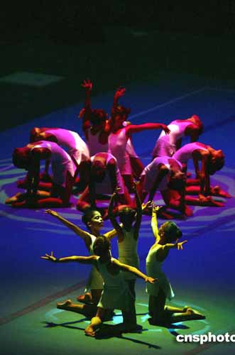 圖為當(dāng)?shù)貢r間24日,在雅典體操展覽館里孩子們的精彩表演。