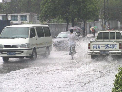 中新社福州八月二十五日電(陳勇 林維莉)今天下午三點(diǎn)起,福州豪雨如注,市中心人車稀少。據(jù)最新的氣象預(yù)告,強(qiáng)臺(tái)風(fēng)“艾利”將奔襲福建、浙江一帶。