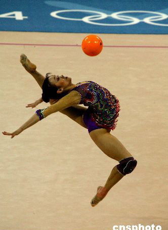 二○○二年釜山亞運(yùn)會(huì)團(tuán)體及個(gè)人全能冠軍鐘玲八月二十四日參加藝術(shù)體操賽前排練,她將代表中國隊(duì)出戰(zhàn)奧運(yùn)會(huì)藝術(shù)體操個(gè)人全能比賽。中新社記者:王瑤