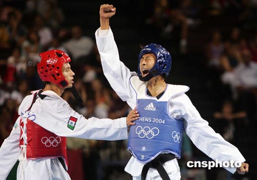 中新社雅典八月二十六日電 從未在奧運(yùn)會(huì)上拿過(guò)金牌的中國(guó)臺(tái)北代表團(tuán)今天雙喜臨門,繼跆拳道女將陳詩(shī)欣實(shí)現(xiàn)歷史性突破后,朱木炎又將男子跆拳道五十八公斤級(jí)金牌收入囊中。