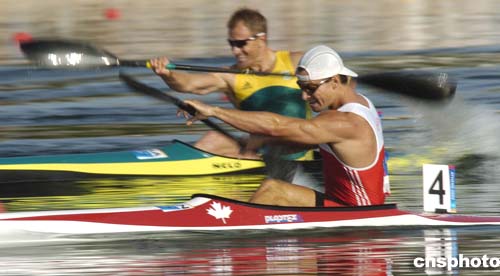 圖為當(dāng)?shù)貢r(shí)間25日舉行的男子皮劃艇單人1500米半決賽中,RICHARD DALTON和MARTIN MARINOV力拼對手的場景。最終Dalton因比MARINOV快半秒而獲得了第三名和一個決賽資格。