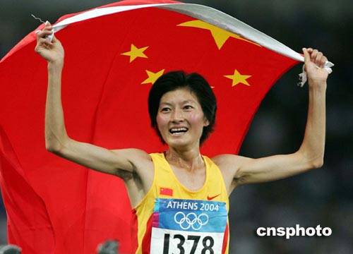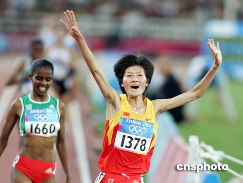中新網(wǎng)8月28日電 二十歲的中國(guó)女選手邢慧娜在剛剛結(jié)束的雅典奧運(yùn)會(huì)女子一萬米決賽中,突破非洲強(qiáng)手的“包圍”,勇奪金牌。
