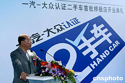 8月28日,一汽——大眾汽車有限公司在北京舉行“一汽——大眾認證二手車”首批樣板店開業(yè)典禮,宣布正式開展二手車業(yè)務。圖為一汽——大眾銷售有限責任公司總經理在開幕儀式上致辭。中新社記者:盛佳鵬