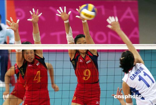 當(dāng)?shù)貢r(shí)間八月二十八晚,中國(guó)女排在雅典奧運(yùn)會(huì)女排決賽中先失兩局的情況下,連扳三局,最終以三比二戰(zhàn)勝俄羅斯隊(duì)而獲得冠軍。中新社記者:毛建軍