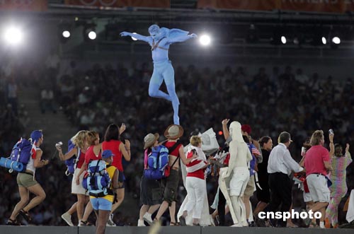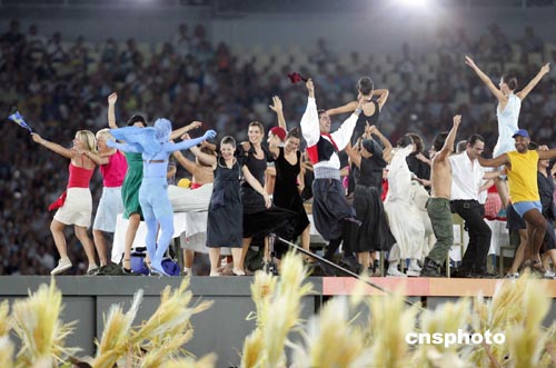 當(dāng)?shù)貢r(shí)間八月二十九日,第二十八屆奧林匹克運(yùn)動會在雅典圓滿結(jié)束。圖為閉幕式上的文藝表演。中新社記者:毛建軍