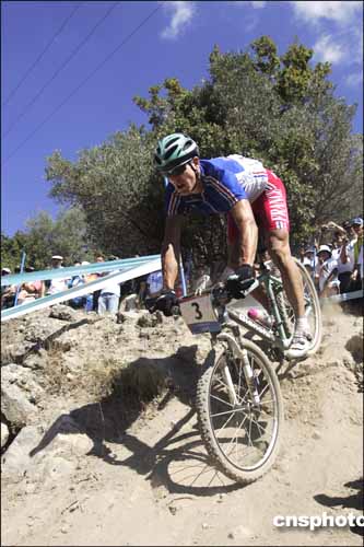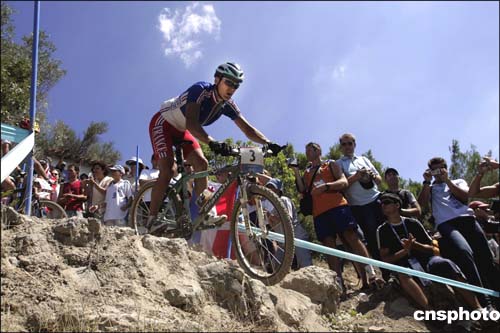 在當(dāng)?shù)貢r間28日進(jìn)行的山地男子自行車越野比賽中,法國選手阿布薩隆用時2小時15分03秒,獲得冠軍。