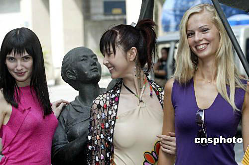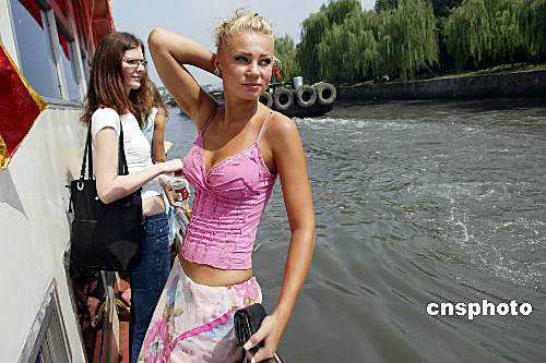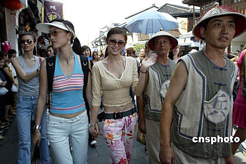 8月30日,參加2004年新絲路世界模特大賽的二十九個國家和地區(qū)的四十多名選手齊聚浙江省杭州市,開始她們的時尚杭州之旅,大賽組委會組織參賽佳麗們游覽西湖、乘船沿運(yùn)河觀光,逛杭州著名的河仿街和絲綢城,夜晚竹海漂流,使模特們進(jìn)一步貼近杭州,貼近市民生活。大賽決賽將與9月5日在杭州舉行。中新社記者 盛佳鵬 攝