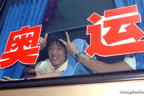 奧運110米欄冠軍、中國飛人劉翔向歡迎的民眾致意。作者:武仲林