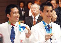 為歡迎香港奧運代表,香港政府特別于8月31日在尖沙嘴文化中心舉行正式的歡迎儀式,F(xiàn)場一早有數(shù)百名市民等候,熱烈歡迎奧運代表及榮獲奧運乒乓球男子雙打銀牌得主高禮澤、李靜。作者:洪少葵