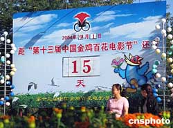 九月一日,在寧夏首府銀川中山公園,“第十三屆中國金雞百花獎(jiǎng)電影節(jié)”倒計(jì)時(shí)顯示牌異常醒目!半娪肮(jié)九月十六日將于銀川開幕,屆時(shí)張柏芝、林志炫、閻維文、韓紅、劉歡、騰格爾等眾多的影視明星、當(dāng)紅歌星及影迷云集銀川。作者:劉呈軍
