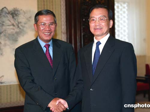 溫家寶表示,中國(guó)政府將繼續(xù)堅(jiān)持“睦鄰、安鄰、富鄰”的周邊外交政策,支持柬埔寨政府為維護(hù)國(guó)家穩(wěn)定、鞏固民族團(tuán)結(jié)和發(fā)展經(jīng)濟(jì)所做的努力。