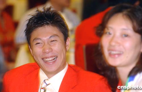 九月二日晚,中共中央辦公廳、國(guó)務(wù)院辦公廳在北京人民大會(huì)堂宴會(huì)廳舉行招待會(huì),歡迎載譽(yù)歸來(lái)的第28屆奧運(yùn)會(huì)中國(guó)體育代表團(tuán)。圖為體操名將李小鵬在招待會(huì)上笑逐言開(kāi)。中新社記者:武仲林