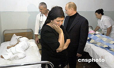 普京在天亮以前到達(dá)了別斯蘭機場,然后乘面包車前往當(dāng)?shù)蒯t(yī)院看望受傷的人質(zhì)。他對別斯蘭的地方官員說,“俄羅斯全國同你們一起感到悲痛!