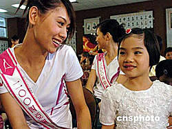參加2004亞洲小姐競選的香港十二位佳麗,九月四日來到香港保良局以關(guān)懷社會、宣揚愛心為題親善探訪入住兒童宿舍的一班小朋友。作者:錢興強