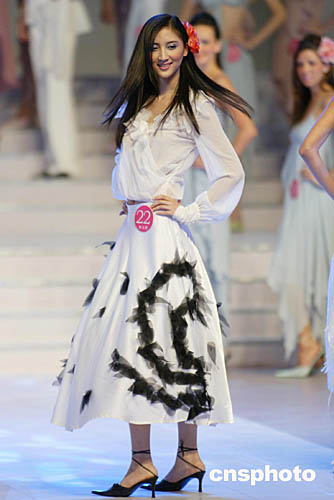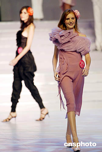 | 9月5日晚,“時(shí)尚杭州之旅·2004年新絲路世界模特大賽”在浙江省人民大會(huì)堂舉行,來自二十八個(gè)國(guó)家的四十七名選手將參加小禮服、泳裝、晚裝展示、情景劇表演以及系列專業(yè)技能展示的比賽。中新社記者:盛佳鵬