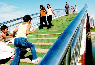 自稱對建筑懂行的李大爺說,估計橋的質(zhì)量沒有問題,否則就不會通行了。游人和附近居民對此均表示,很高興可以登上彩虹橋,再也不用繞遠路過河了。(公冶祥波)