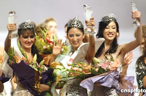 | 9月5日晚,“時(shí)尚杭州之旅·2004年新絲路世界模特大賽”在浙江省人民大會堂舉行,來自二十八個(gè)國家的四十七名選手經(jīng)過禮服、泳裝、晚裝展示、情景劇表演以及系列專業(yè)技能展示的比賽,大賽桂冠最終被中國選手李子寧(中)奪走,烏克蘭選手左娜·高維科(左)和韓國選手Kwon Hyun Ji分列二三名。中新社記者:盛佳鵬