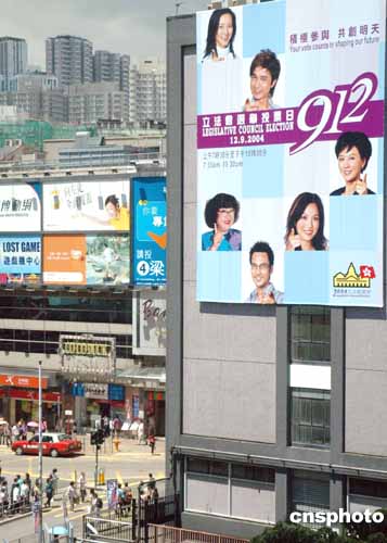 香港立法會選舉日即將舉行,各政黨造勢宣傳如火如荼,街頭政府的選舉廣告呼吁選民踴躍投票。作者:洪少葵