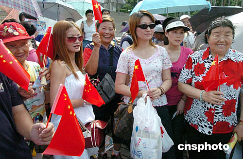 守候,就為了分享,這是今日提前數(shù)小時(shí)就等候在香港大球場(chǎng)外,觀看“中國(guó)人的驕傲──奧運(yùn)金牌精英大匯演”的香港市民的共同心聲。