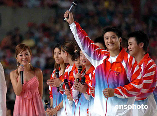 “跳水王子”田亮向在場(chǎng)人士舉手致意