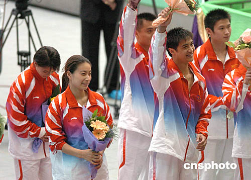 金牌跳水運(yùn)動(dòng)員郭晶晶、田亮等入場