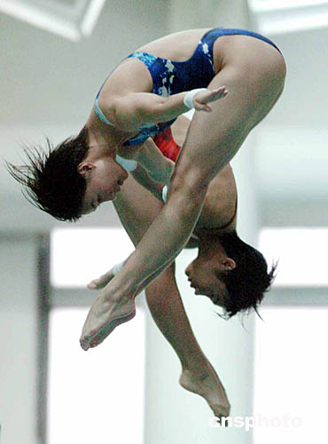 田亮、胡佳、勞麗詩、李婷、楊景輝的十米高臺跳水,也讓觀眾大飽眼福。觀眾席上的青少年不斷高喊他們喜歡的運動員名字,令整個表演氣氛更顯熱鬧。最后進行的雙人三米板和十米高臺表演,田亮、楊景輝和勞麗詩、李婷的出色表演,把整個氣氛推向高潮。